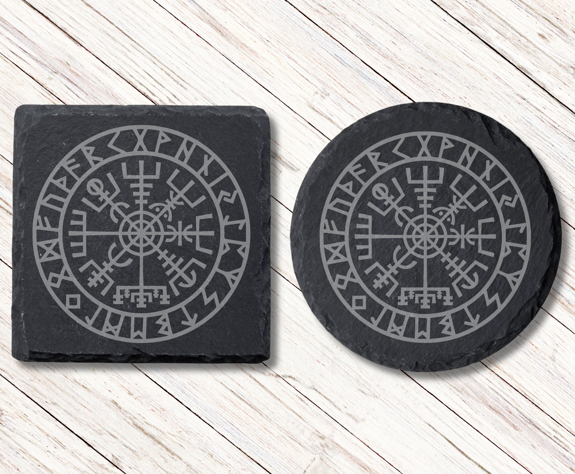 Viking Compass Slate Coaster – Laser Engraved Vegvisir Symbol Norse Mythology Gift & Nordic Home Décor